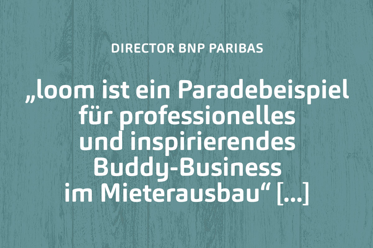 loom ist Ihr erfahrener Generalübernehmer für die bauliche Realisierung von Büro- und Gewerbeflächen. Als Generalübernehmer für Innenausbau arbeiten wir partnerschaftlich mit Architekten, Projektentwicklern und Bauherren zusammen.